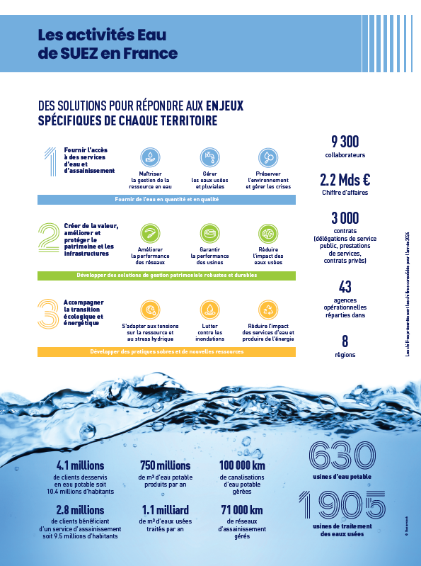 Face aux défis environnementaux grandissants, SUEZ développe des solutions efficaces, circulaires et innovantes pour une gestion responsable de la ressource en eau.